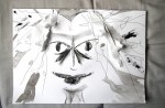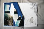 - cloth, photo, ink, paper, charcoal, on paper (on bed)